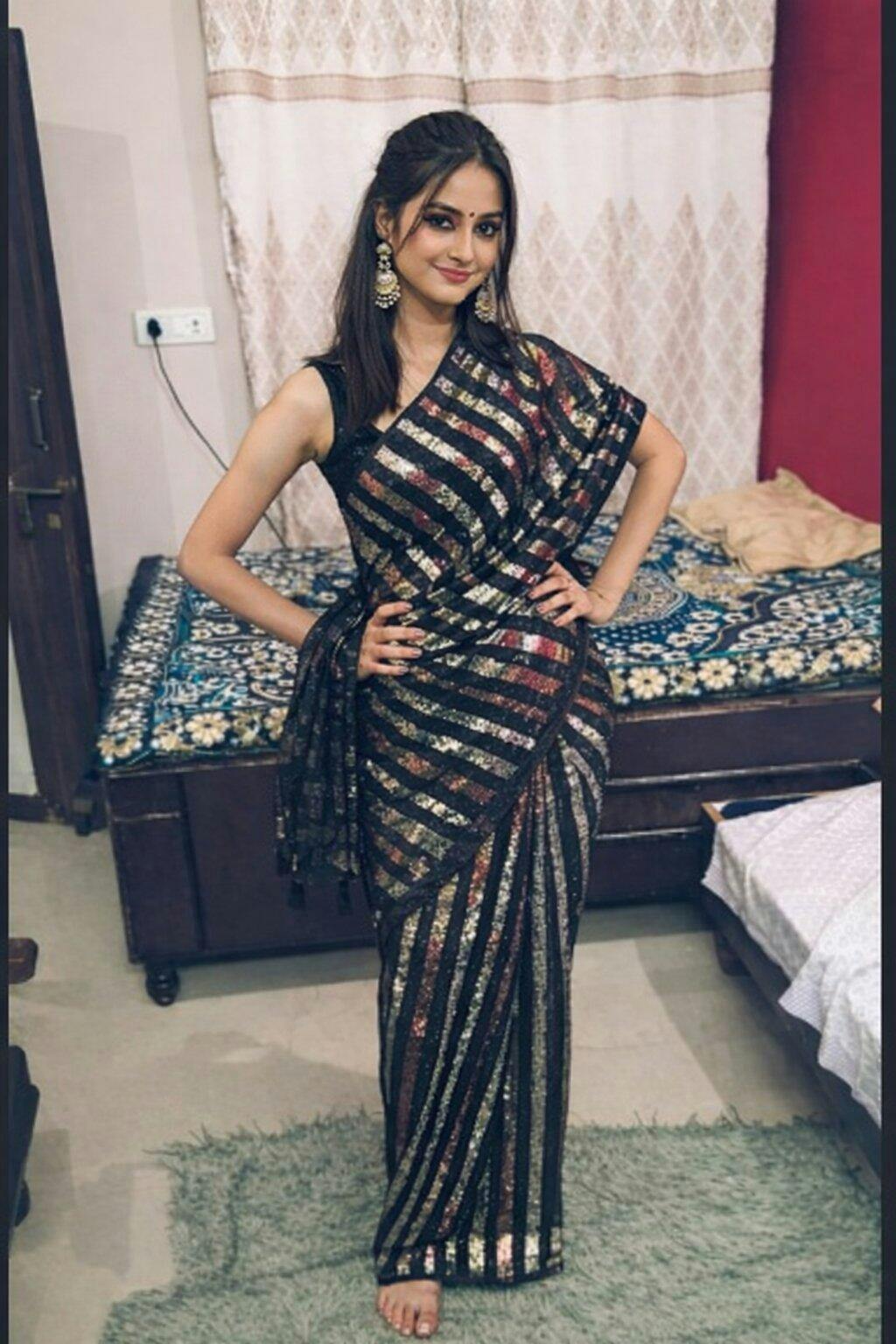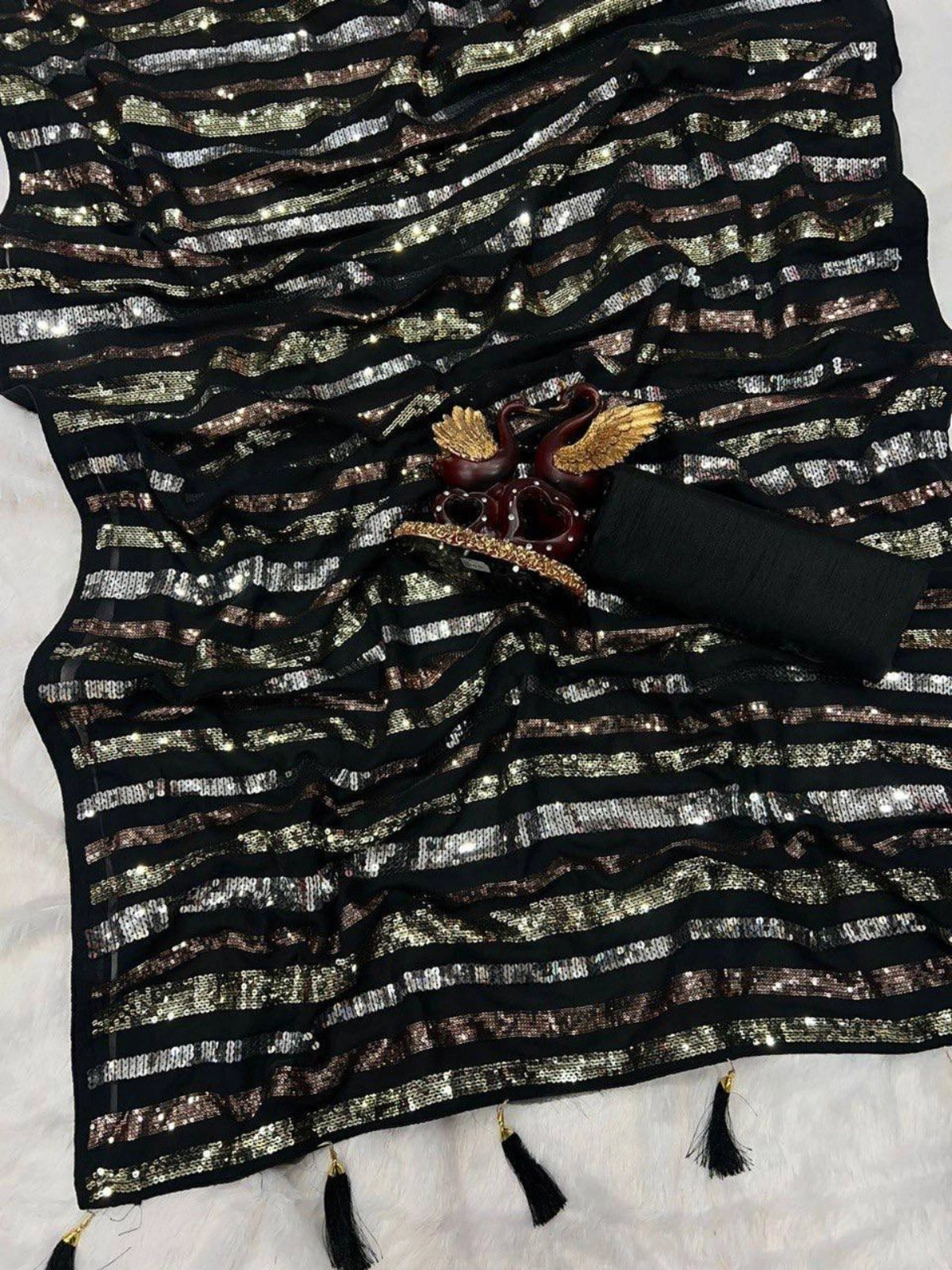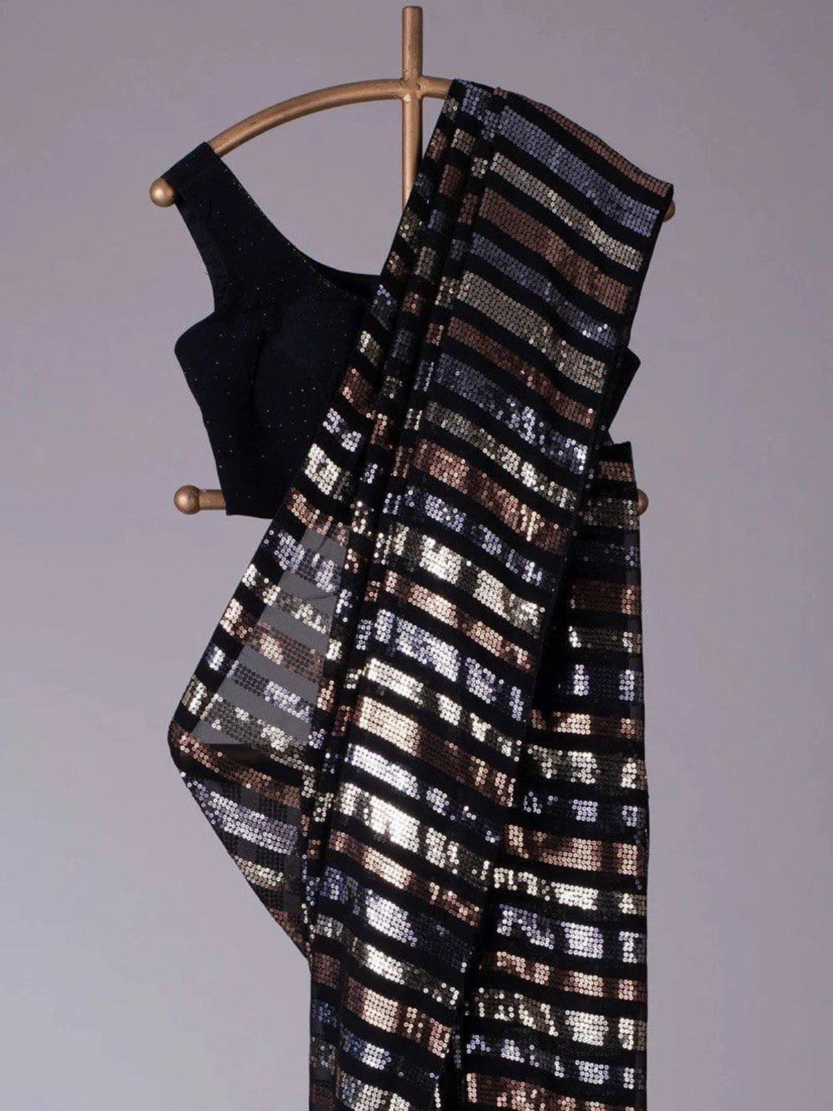 Blouse Piece: Comes with a matching sleek black blouse, designed to perfectly complement the sparkling saree