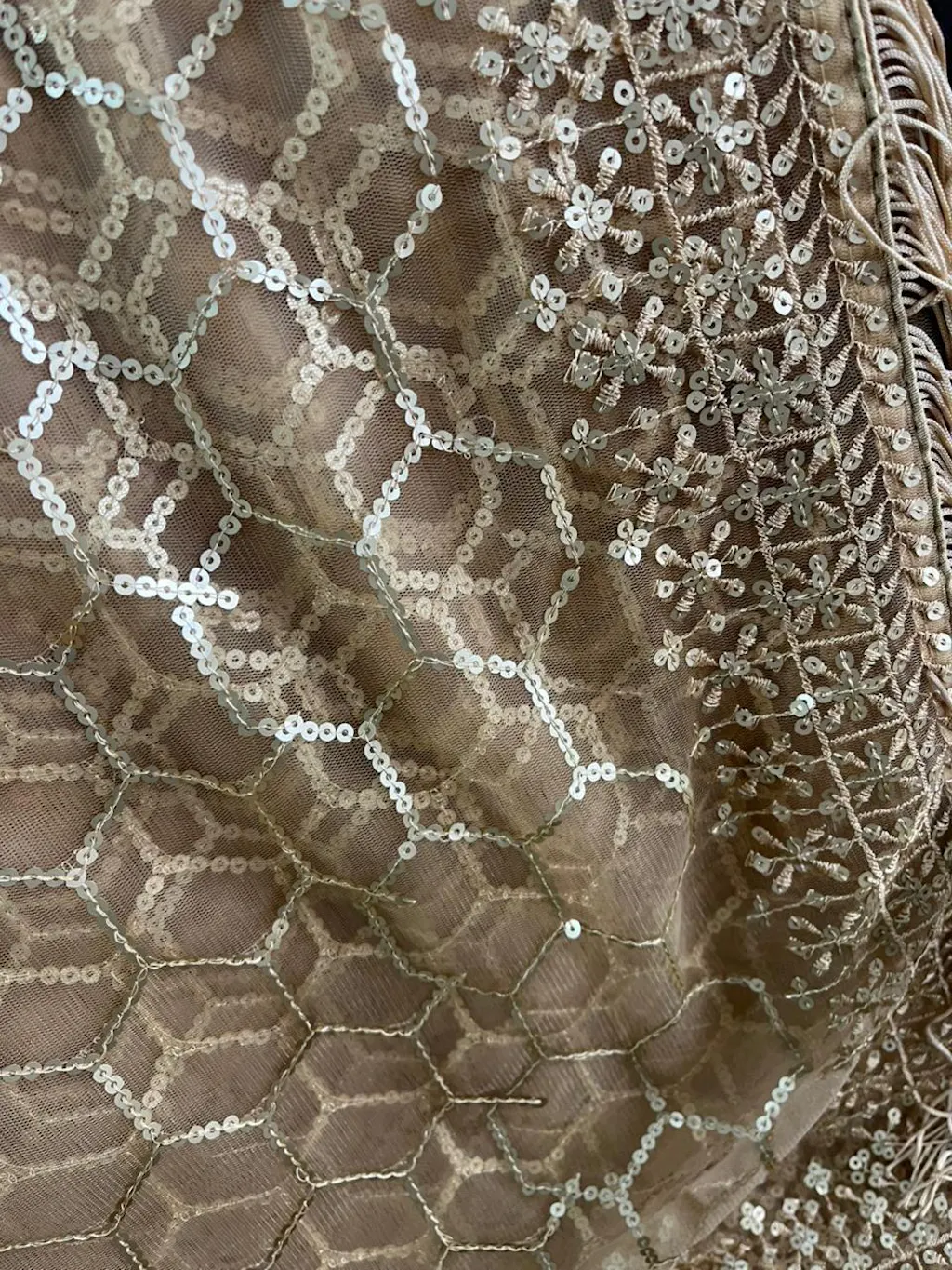 | Fabric: | Premium golden net fabric with delicate sequin work |
