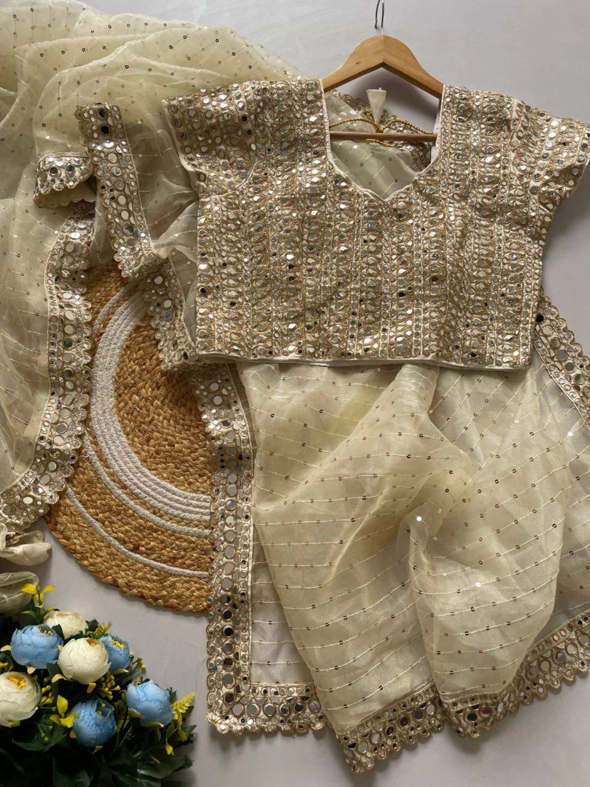 Fabric: Premium sheer organza fabric with authentic mirror embellishments for a sparkling effect