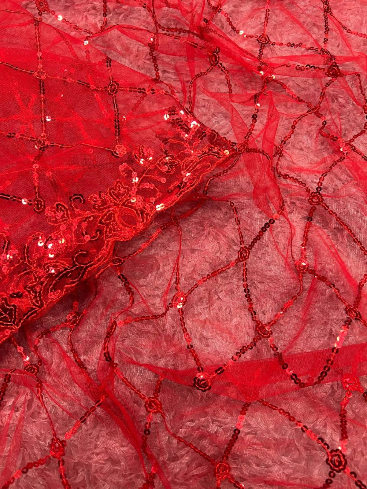 Feel beautiful in this lightweight red net saree. The sequin design gives it a graceful sparkle, perfect for weddings and celebrations.