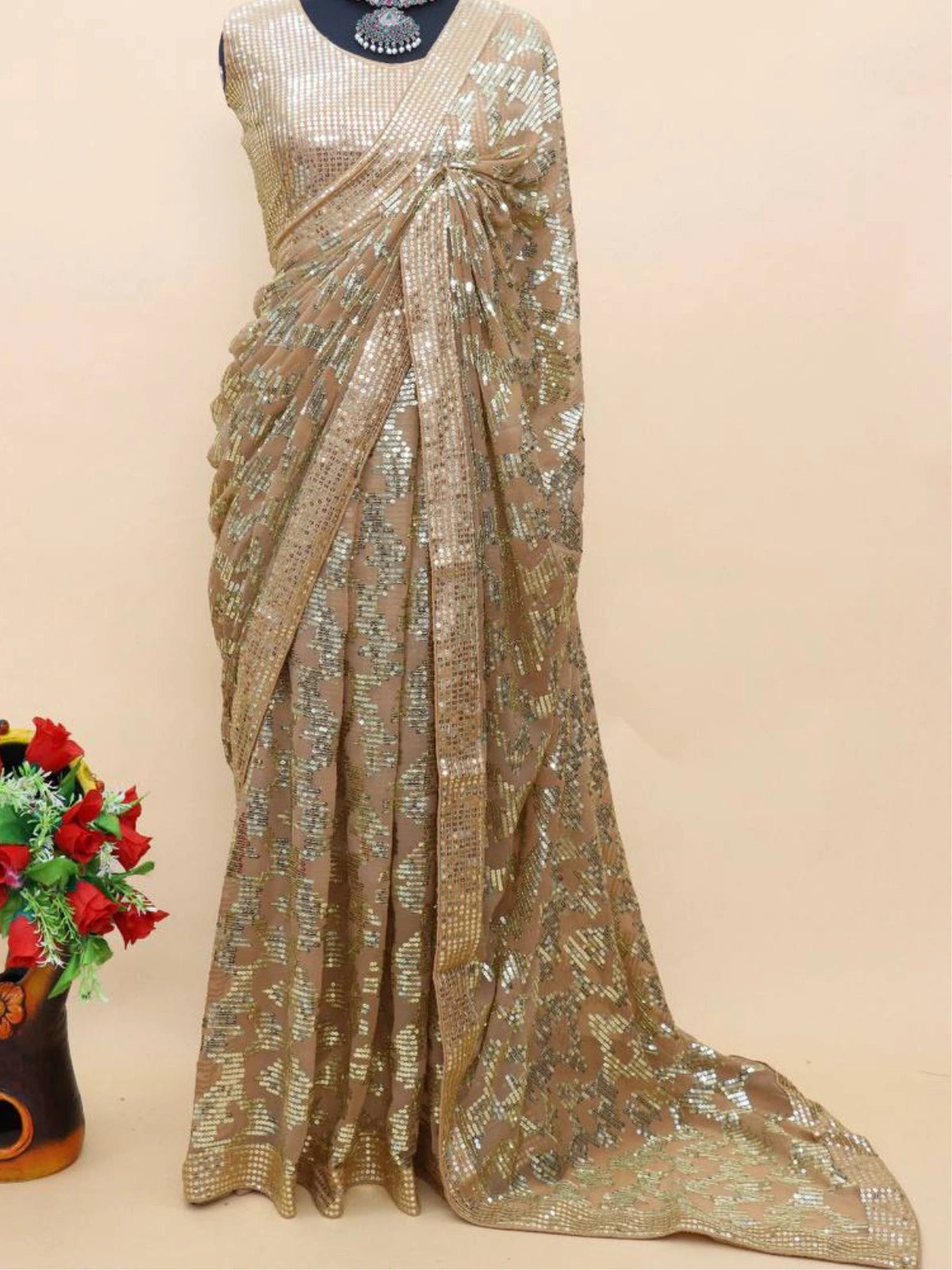 | Saree Design: | All-over sequin embellishments with a graceful drape that adds a touch of glamour |