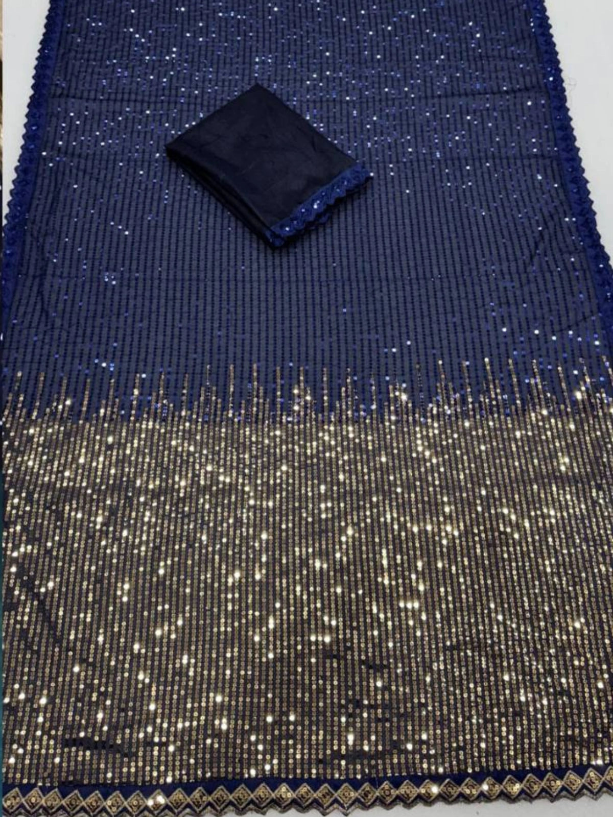| Fabric: | Premium georgette with sequin finish and shimmering border |